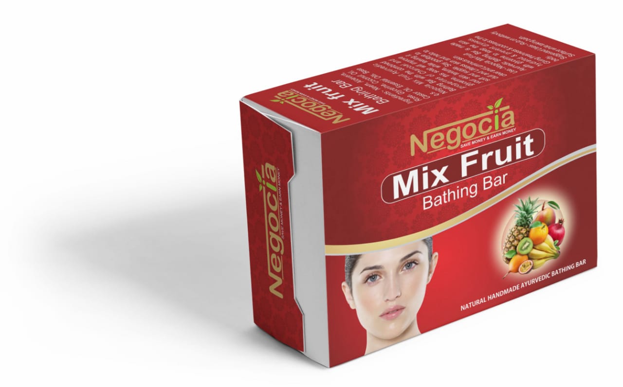 Negocia Mix fruit Bathing Bar with the combined properties of Rose Water and Glycerine, this soap will improve your skin texture, while leaving it soft and supple. Say Goodbye to dull and lifeless skin and hello to clear and luminous skin.